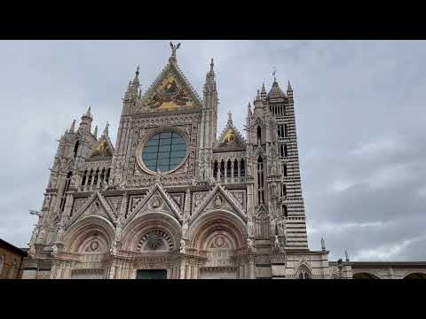 Tintin wanted to drive. Should only have been about an hour, but held up for about 20 minutes - must have been an accident, and lots of traffic diverted to avoid the section of the motorway. Interestingly enough, even though the signs were green, for autostrada, we didn’t have to pay anything. We’re parked in a large carpark on the outskirts of Siena (population 54,000). Only a couple of miles to cycle into the main square. But - what a hill to get up! I suppose that’s what happens when you visit medieval cities on hilltops!
